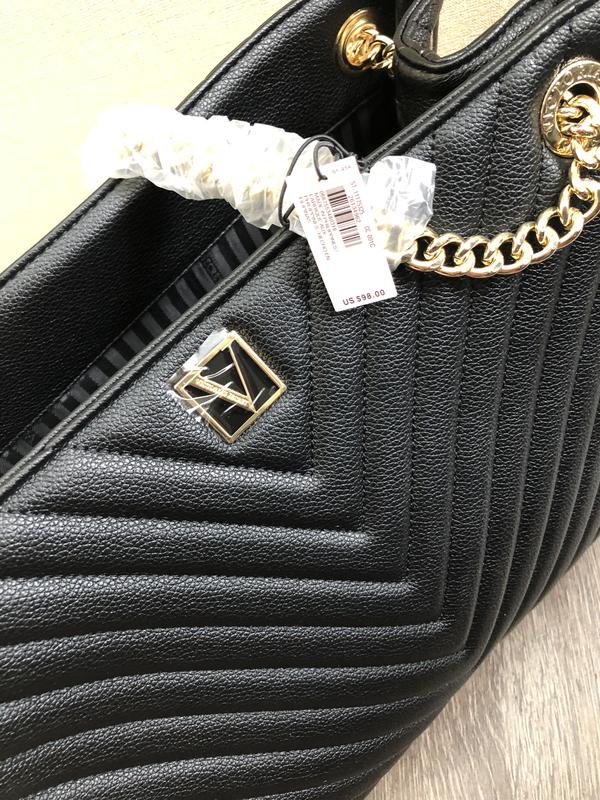 The Victoria Shoulder Tote - Сумка The Victoria Shoulder Tote Классическая, наполированная. Всегда готова к работе. Эта сумка сочетает в себе как моду, так и функциональность и удобство в одном стиле. Легко поместит твой ноутбук для работы и другие необходимые вещи. Завершена классическим рельефом, фирменной монограммой V и стильными ремешками с золотыми цепочками. Имеет брендированный фирменный брелок на кнопке-застежке сбоку и фирменное зеркальце внутри. - Вмещает: телефон, кошелек, ключи, небольшой ноутбук и повседневные вещи - Открытый верх с застежкой - 1 внутренний карман с зеркальцем, 1 внутренний карман на молнии - Материал: импортированный полиуретан - Размер: 34 х 26 х 16 см - Длина ремешка: 24 см - Длина верхних ручек: 13 см. Исключительно оригинальная продукция. Вировник: USA. Заводская упаковка. Ціна на бірці: 99,95$