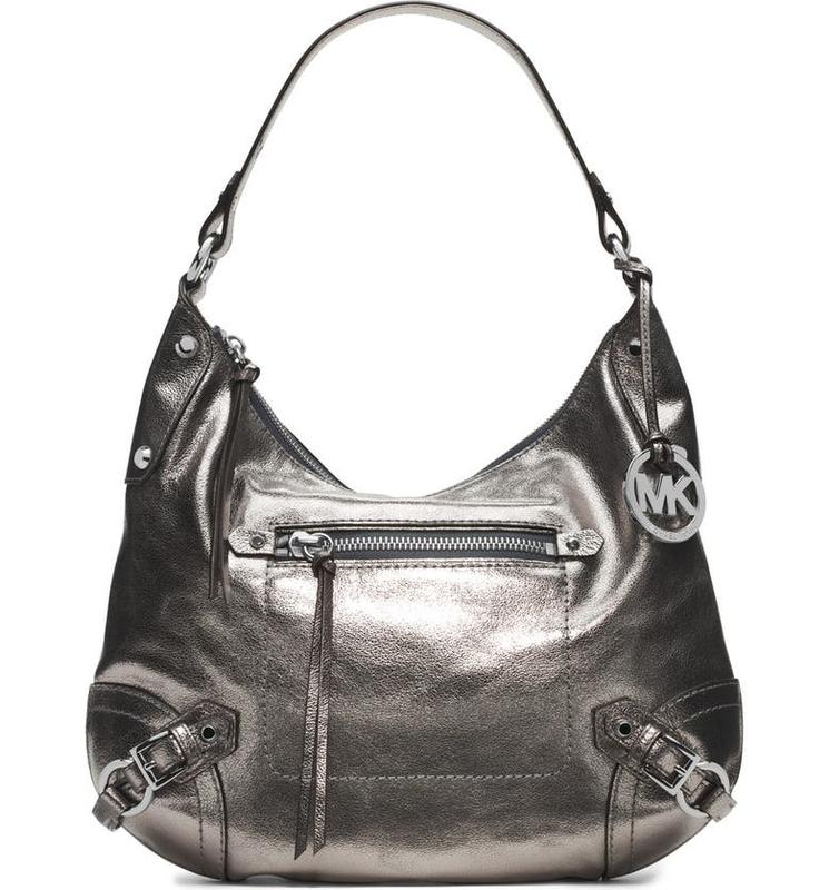 СУМКА-ХОБО MICHAEL KORS сумка через плечо FALLON из металлизированной кожи MICHAEL Michael Kors Сумка на ремне Fallon Hobo из никелевой металлизированной кожи. Фурнитура серебристого цвета. Застежка-молния сверху. Передний карман на молнии; Акценты на пряжках внизу. Внутри подкладка с монограммой; одна молния и четыре открытых кармана. Нет медальона с логотипом. Высота без ручки - 30 см., ширина - 34 см., ручка - 43 см. Фото и есть описание, состояние на фото.