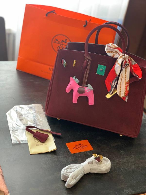 Сумочка с длинным ремешком Материал: натуральный замш Цвет: марсал Размер: 35-25-15 см В комплекте фирменный пакет, пыльник, длинный ремень, лошадка, платочек, замочек и ключик, карточ