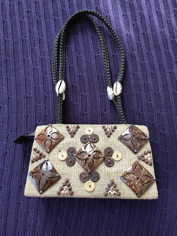 Сумка привезена из Индонезии, ручная работа. Есть одно отделение. Размеры: высота 14 см (39 см с ручками), ширина 25 см