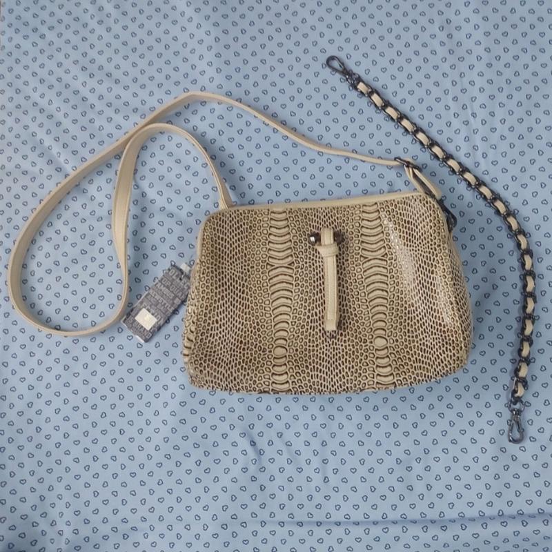 Сумка, на три отделения внутри с карманами.. Две съемные ручки, короткая и длинная.Размер: 27х20х9см.