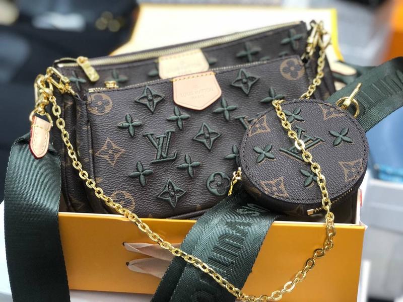 Сумочка мульти вышивка Материал: кожа канва Размер: 25-14-4 см, 20-11-3 см, 10-10-2 см В комплекте коробка, пыльник, цепочка, монетница, ремень, 2 сумочки
