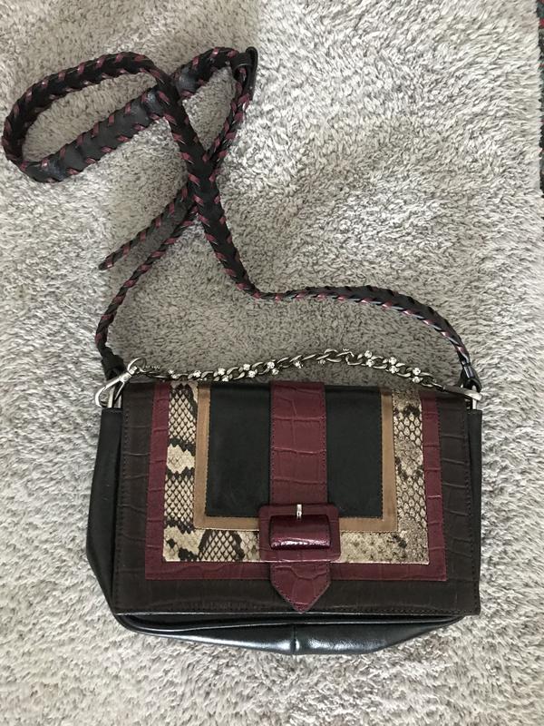 Zara сумка из лимитированной коллекции, натуральная кожа, декоративная металлическая цепочка с камнями.