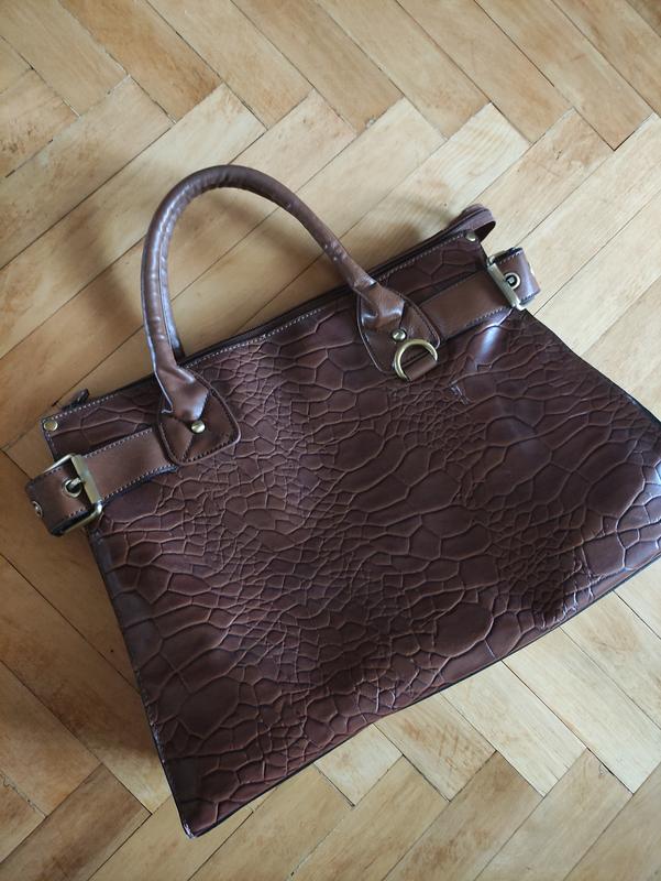 б/у шкіряна сумка,коричневого кольору на замок. розміри 39см на 30см на 15 см. В середині має кишеню на замок та дві маленькі. має недолік,трошки потріпані нитки в середині до 5 см. Але сумка в ідеальному стані.