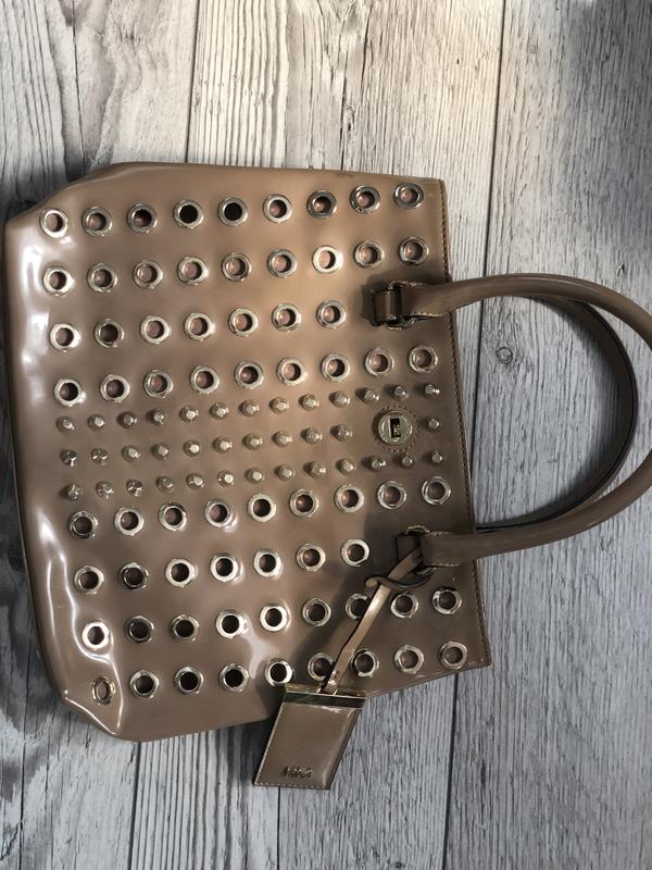 Сумочка в хорошому стані . Заміри на фото . Колір бєж / лакований . Яка тканина незнаю ( не цікавлюсь таким )