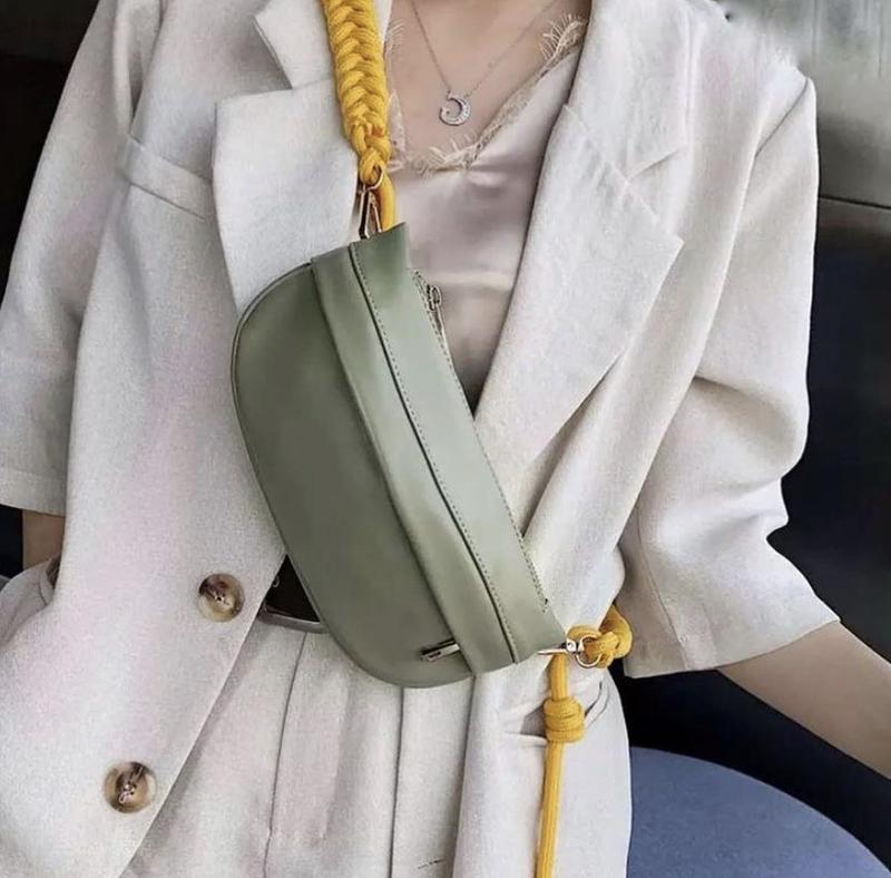 Сумка кроссбоди с модной плёточной ручкой, цвет оливка 🫒, желтая ручка Есть другие цвета