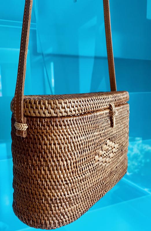 Плетённая сумка, отделка-кожа Высота-13,5 см Длина-21.5 см Ширина 7,5 см Длина ремешка 128 см Handmade from Bali