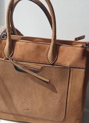 Новая женская сумка Parfois. Идеальна для деловой барышни. Размеры сумки: 36х29х12 см. очень вместительная и в то же время не громоздкая. Сумка сделана из качественной экокожи. В нее легко вмещается кошелек, личные мелочи, ноутбук размерами 34х28 см, документы и многое другое. Ремешок регулируется. Можно снять. Длина ремешка 112 см (можно сделать короче (есть отверстия) или удлинить). В сумке есть 3 основных отделения+2 кармашека по бокам (один на магнитной кнопке - фото). В кармашеке с фронтальной части прилагается прозрачная "косметичка" (фото). В одном из основных отделений присутствует кармашек для телефона и канцелярских мелочей (фото). Фурнитура позолота.