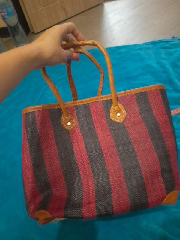 Із соломи низ,ручки шкіра ширина 38см,висота 25см,довжина ручок 20см