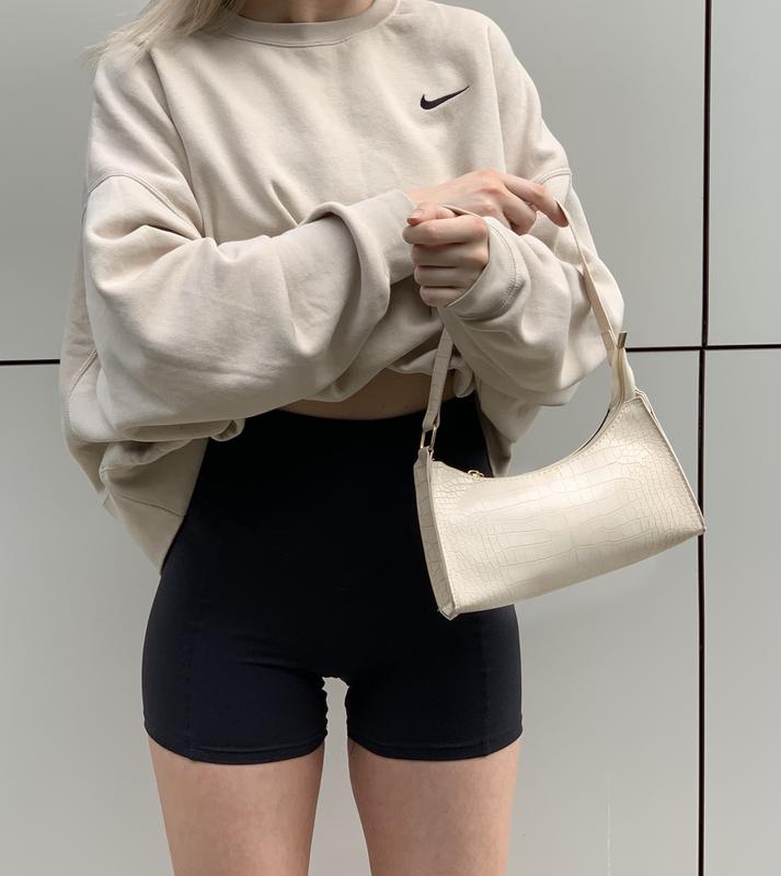 Сумка багет бежевого цвета Одно отделение Есть также в чёрном цвете