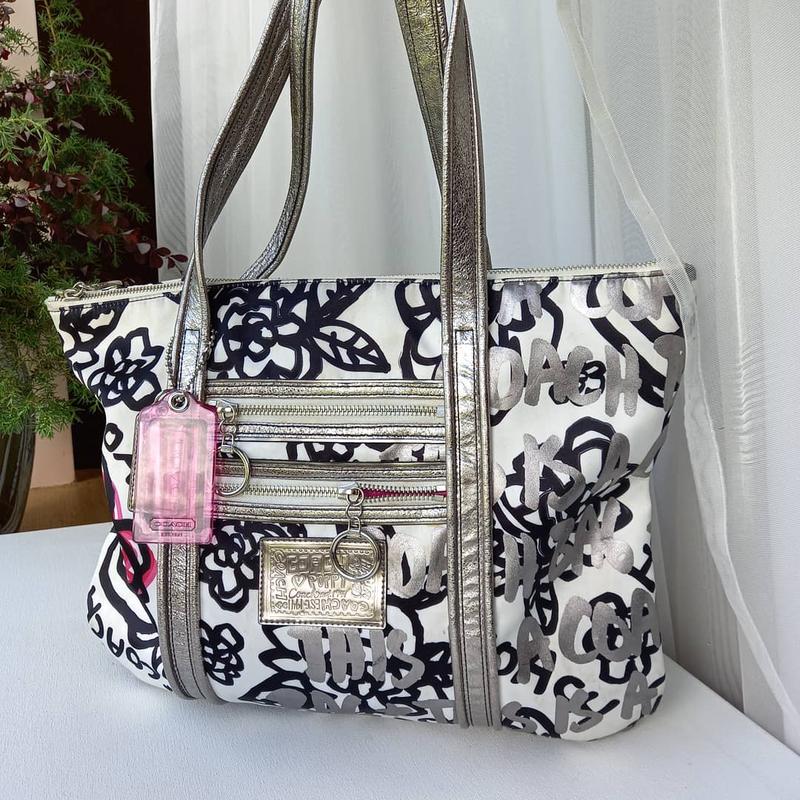 Сумка Coach, 40×35 см, дві зовнішні кишені на замок, одне відділення з кишенею на замок і двома малими кишеньками, мінімальні сліди використання