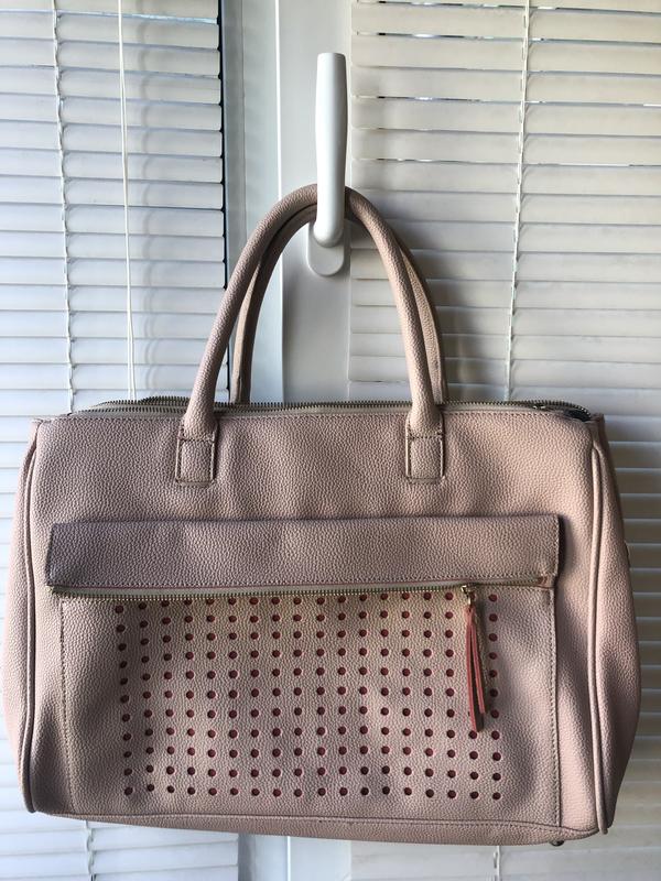 Стан: ідеальний Матеріал: пресована шкіра Колір: Пильна троянда Ширина - 38см Ширина Дна -10см Висота 28см Довжина Ременя - 117см Відділи - 4шт. Внутрішні кишені - 3шт різних розмірів Довжина ручки - 39 см