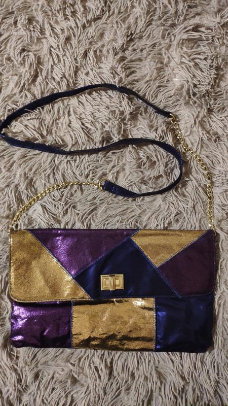 Клатч Atmosphere 34*20см Сзади есть пятно(на фото видно ) в использовании не заметно и в глаза не бросается, т. к ткнь переливается