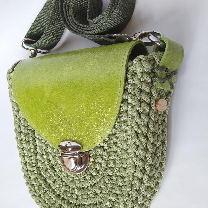 Сумка ручної роботи. Використаний поліпропіленовий шнур і натуральна шкіра. Є підкладка, невеликий кишеню. Одне відділення.