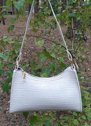 🔶️ Трендовая сумочка Багет в белой расцветке 🔸️ PU глянцевая кожа 🔸️ крокодиловый узор 🔸️ шир 24 × выс 15 см 🔸️ ремешок 53 см 🔸️ также в наличии в черной, абрикосовой, зелёной, бежевой, шоколадной, бордовой, ягодной, красной расцветках ⠀