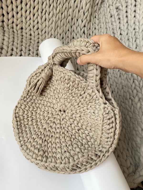 Сумка из трикотажной пряжи , среднего размера в бежевом цвете Диаметр 36 см