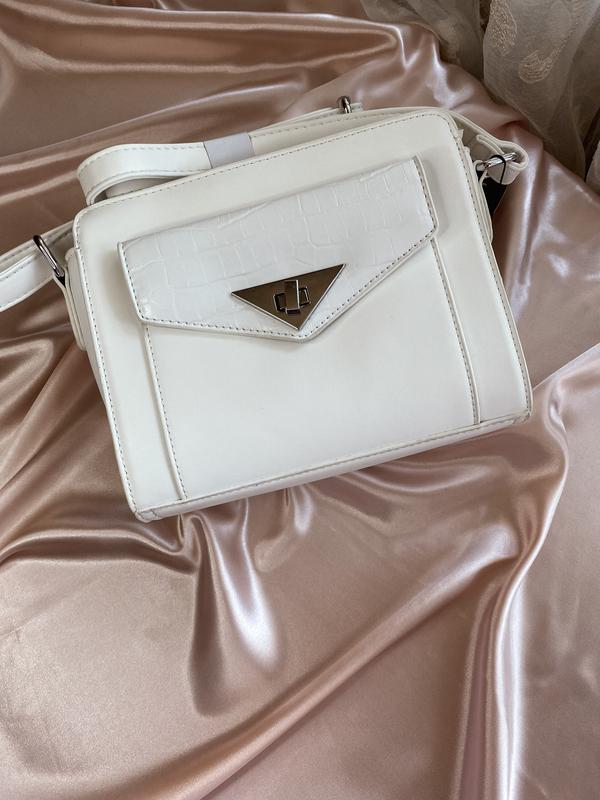 Идеальная базовая белая сумочка,спереди идёт кармашек и сзади,в комплекте идёт длинная ручка