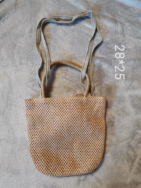 Сумка небольшого размера есть короткие и длинные ручки. Отделение можно закрыть с помощью резинки на фото видно) можно на пляж или просто летом))