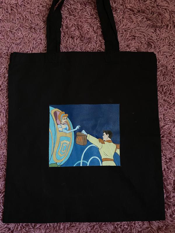 Ручная роспись специальными красками по ткани Размер: 41*38 Высота ручек: 20 см Цвет: чёрный