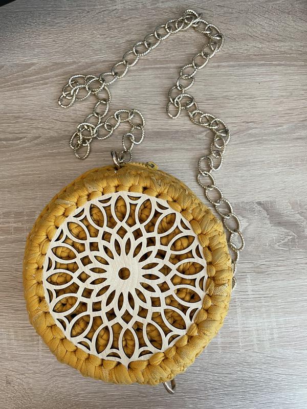 Жёлтая сумка ручной работы с деревянной вставкой,в хорошем состоянии.