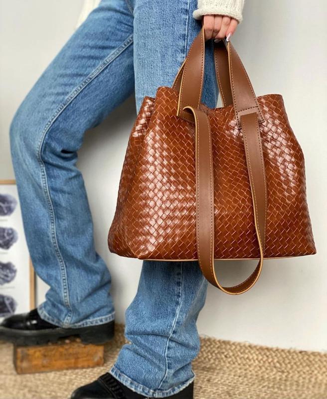 Модель 002 Цена: 839 грн ▪️стильная ▪️универсальная ▪️вместительная ▪️структурный материал ▪️одно большое отделение ▪️есть внутренние карманы, один карман на змейке (с задней стороны сумки) ▪️ручки: короткие и длинные ▪️материал: плетенная эко-кожа Размер: 43*30*16см Цвет: коричневый, бордовый, белый, бежевый, пудра, синий, чёрный, мокко
