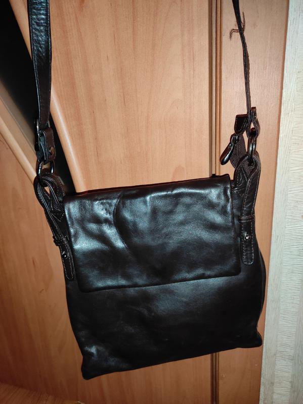 Сумка кроссбоди на длинном ремешке ,натуральная кожа,цвет шоколад , отличное состояние