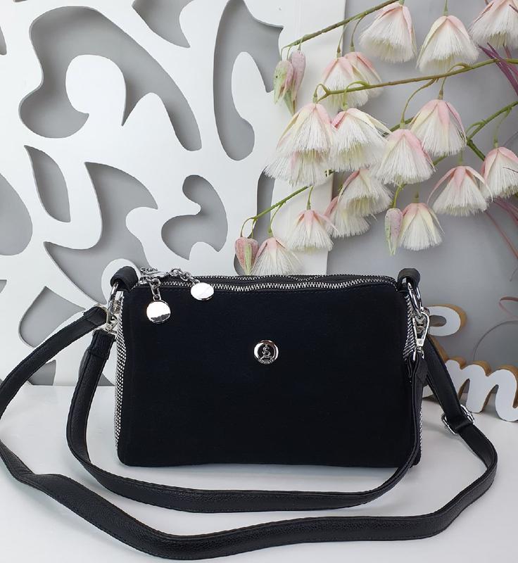🔺 Арт. **********H ▪ Материал: натуральный замш+эко кожа люкс качества ▪ Цвет: черный ▪ длина короткого ремешка - 63 см. ▪ В наличии!