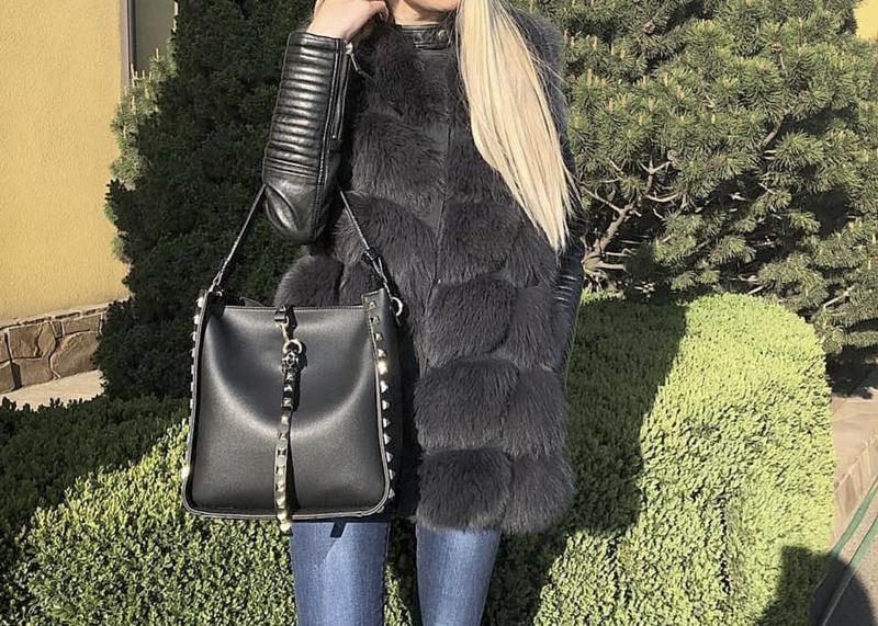 Сумка кожаная с шипами на одно отделение Есть длинный ремешок ,но его лучше заменить