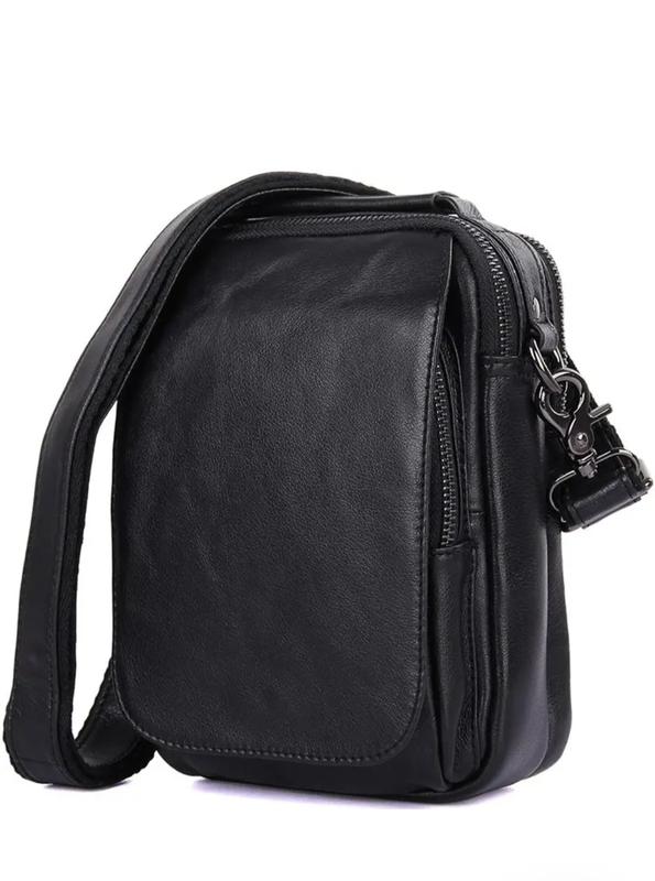 ✔️Материал: натуральная кожа высокого качества; ✔️Цвет: черный; ✔️Размеры (ШхВхГ, см): 16х22х6. ✔️ артикул: 14451 Удобная мужская сумка, имеет компактные размеры и приятную на ощупь мягкую кожу. Она прекрасно смотрится и удобна в использовании, ее можно носить в руке и на плече (при помощи плечевого ремня, который идет в комплекте). В этой сумке можно носить много небольших аксессуаров, таких как небольшой блокнот, кошелек, визитки, переносная зарядка для телефона, ну и сам телефон. Она прекрасно подойдет для подарка мужчине к любому празднику ну или просто так. Характеристики: - 2 основных отделения, закрываются на молнии; - на лицевой стороне вместительный карман на молнии, который дополнительно закрывается клапаном на магните; - в основном отделении есть потайной карман на молнии; - На задней стенке есть карман на молнии; - Регулируемый плечевой ремень.