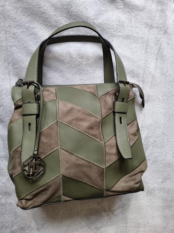 Виконана з еко-шкіри зі вставками замші. Якісна фурнітура та пошиття.