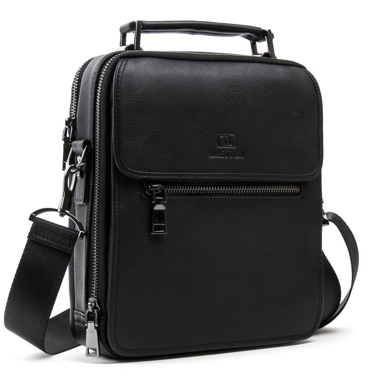 Чоловіча шкіряна сумка-планшет Bretton. Два відділення, закривається на блискавку. Всередині першого відділення є відкритий кишеню, а у другому відділенні знаходиться бокова кишеня на блискавці. На фасаді сумки є дві кишені: один на блискавці й другий великий під клапаном. На зворотному боці сумки знаходиться один кишеню на магнітній кнопці. Регульований плечовий ремінь в комплекті. Розмір (див) 21*25*8 9027-5