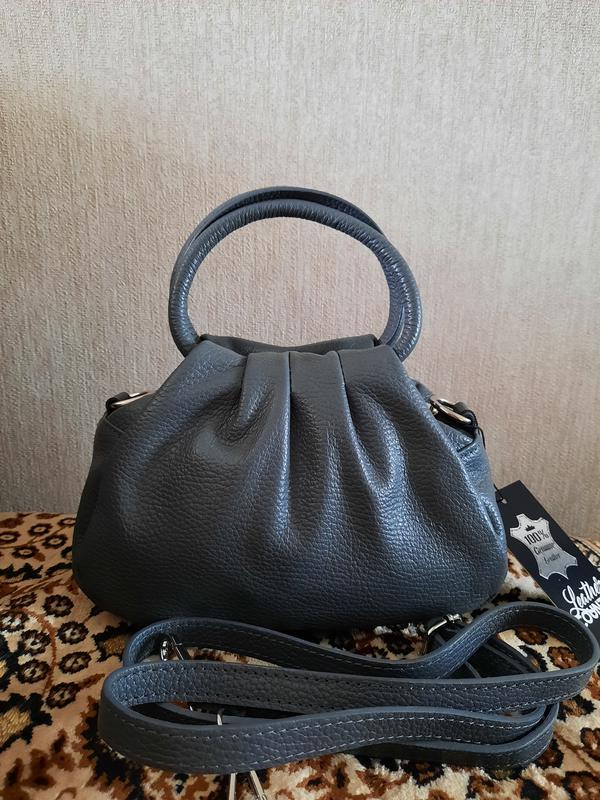 Очень милая кожаная сумочка Vera Pelle. Производство Италия. Несмотря на маленький размер очень вместительная, имеет широкое дно, объёмная. Можно носить двумя способами - с маленькими ручками или спрятать их внутрь как клатч. В комплекте есть длинный плечевой ремень, который регулируется по длине. Внутри 1 отделение, застегивается на молнию и магнит, сзади есть боковой кармашек. Очень красивый цвет, который будет актуален в любом сезоне. Замеры: ширина по низу 22см, ширина по центру сумки 23см, высота 15см, дно 11см. Возврата нет. Пересылка только Новой почтой после 100% оплаты на карту Приватбанка.