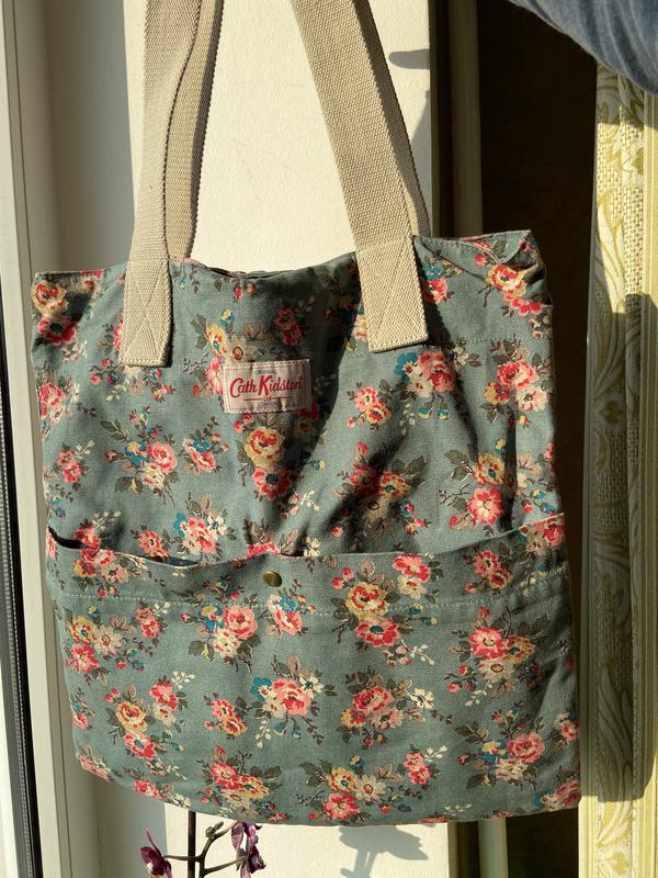 Сумка Cath Kidston На лицевой стороне накладной карман на кнопке Основное отделение с двумя накладными карманами Две ручки Замеры: ширина 40 см., высота 40 см., длина ручек 59 см.