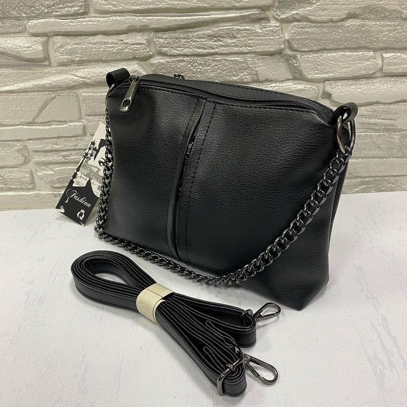Удобная и практичная сумочка небольшого размера на каждый день Два цвета в наличии Материал: искусственная кожа высокого качества Производство Украина Длина 27 Высота 20 Ширина 7 см Высота цепочки 23 см Длинный ремешок 126 см