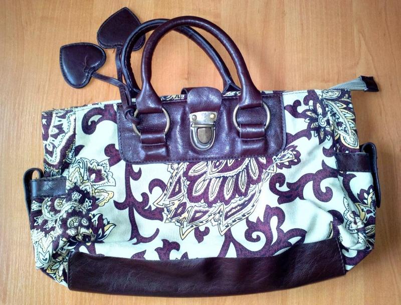 продам небольшую удобную дамскую сумочку. сумочка из плотной хлопковой ткани , типа джинса, с красивым рисунком, и кожзама шокладного цвета. подкладка чистенькая, состояние отличное, нюансов нет, как новенькая. размеры - 30х17х6 см.