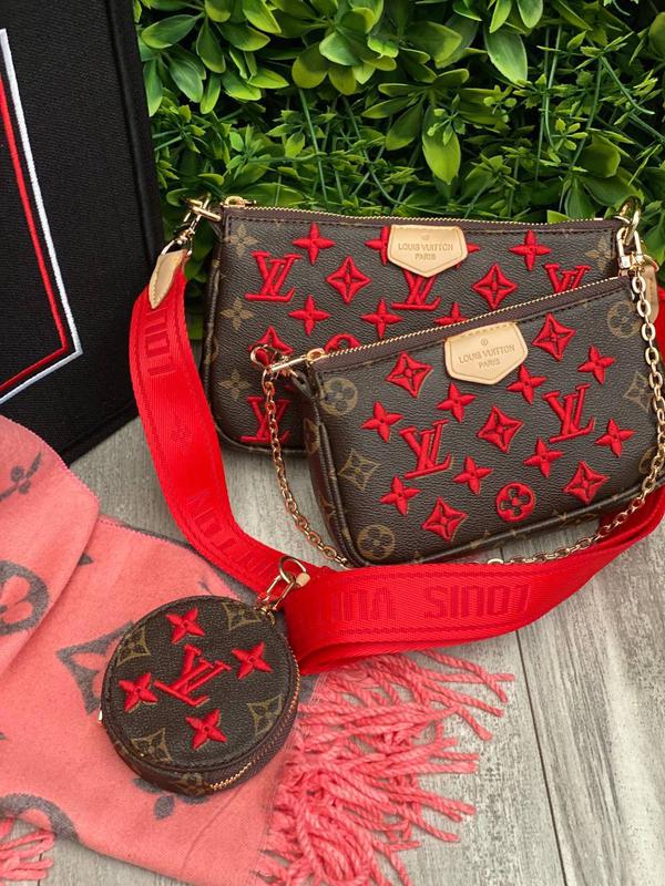 Сумочка LV мульти вышивка Производитель Турция Материал: канва В комплекте 2 сумочки, монетница, цепочка, ремень