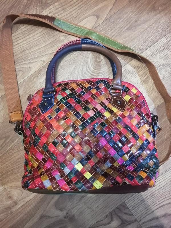 яркая кожаная сумка,с массой отделений, состояние идеальное