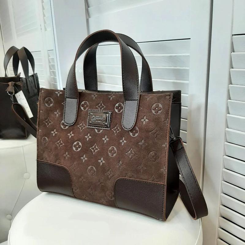 ФУРНИТУРА: никель РАЗМЕРЫ: Ширина по дну – 28 см, высота – 22 см, дно – 10,5 см + ручки и съемный длинный ремешок МАТЕРИАЛ: тиснение бренд на натуральной замше и экокоже., подкладка - плотная ткань СОСТАВ: Одно отделение сверху закрывается на молнию. В середине есть 2 открытых кармана и карман на молнии. С тыльной стороны – карман на молнии.
