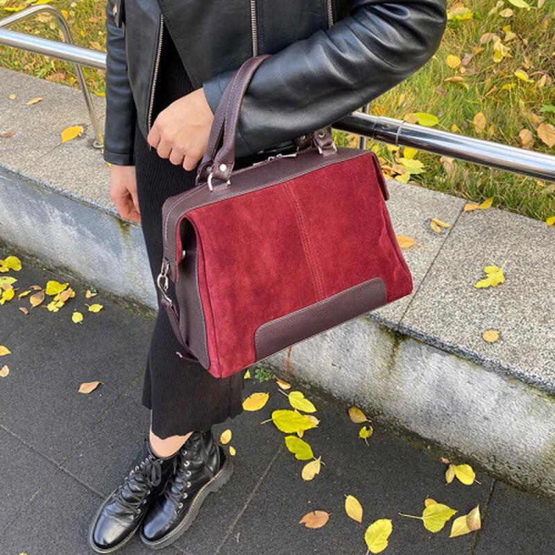 арт. 903656 дополнительно Внутри одно отделение, есть карман на молнии и для телефона Ручки от сумки и до сумки 51-52см ширина по верху 27см, по низу 30см, высота 23 см,дно 25см, глубина дна 13см. Материал натуральная кожа и замша Цвет на выбор