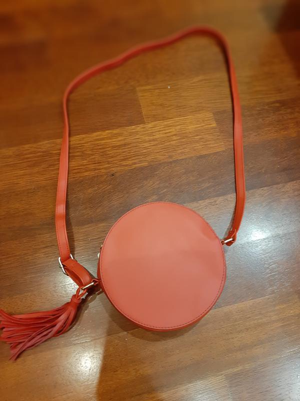 Отличная сумочка-макарун, красного цвета, замочек золотой, ремешок регулируеться. Дефектов нет.