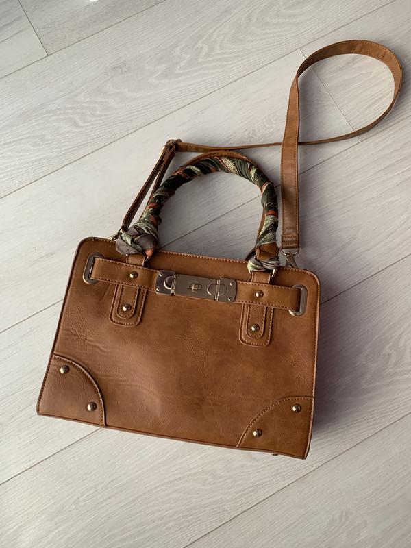 Сумочка жіноча, гарного коричневого кольору. Всередені одне віділення і два карманчики, стан нової. Єдиний дефект це трохи здерта ручка, на фото видно