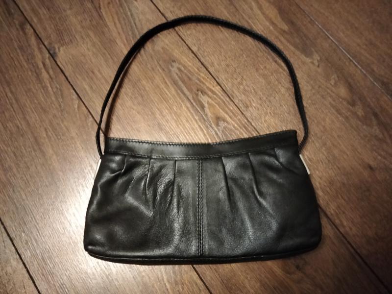Сумочка багет з м'якої і ніжної шкіри , одне відділення і збоку відділення на блискавці. Ручка закріплена металевими пластинами . Розмір довжина 22 см , висота 11 см , ширина по денця 3 см ,довжина ручки 46 см .