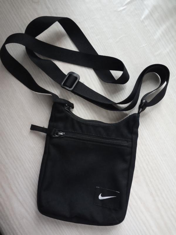 Маленькая текстильная сумочка через плечо от Nike. Очень легкая, вместительная. Имеет карман на молнии по фронтальной стенке и карман на молнии внутри. Состояние б/в очень хорошее, целая не затерто. Высота сумки 17 см ширина-15,5 см бека-2,5 см. Длина лямки регулируется. Унисекс.