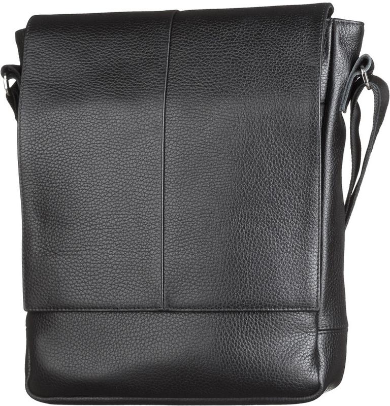 Материал: натуральная кожа; Цвет: черный; Размеры (ШхВхГ, см): 24х28х8; Страна производства: Украина. Надежная сумка вертикального формата в деловом стиле на каждый день. Сумка изготовлена из высокопрочной кожи, которая сохранит новый добротный вид изделия многие сезоны. Особенности: - закрывается молнией и клапаном с магнитной кнопкой; - одно основное отделение с прорезным карманом на молнии и накладным кармашком; - с передней стороны под клапаном накладной карман; - задний карман на молнии; - кожаный регулируемый плечевой ремень; - подкладка из черной ткани. Содержимое изделия надежно защищено прочной молнией и клапаном на магнитной застежке. В этой сумке Вы можете хранить любимые девайсы, везде брать их с собой, а также не забывая о зарядках к телефону и планшету - для всего этого найдется место в этой практичной сумке.