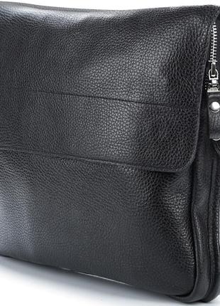 Материал: натуральная кожа высокого качества; Цвет: черный; Размеры (ШхВхГ, см): 34х26х6; Страна производитель: Украина. Эксклюзивная молодежная сумка из высококачественной кожи ручной работы от украинского производителя. Эта сумка отлично подойдет молодым людям ,которые учатся в университетах, институтах, колледжах. Так как она многофункциональна, в нее можно положить небольшой ноутбук 12-ти дюймов или планшет и еще останется место для тетрадок, документов или книг. Сумочка с оригинальным дизайном, она поделена на три автономных отделения. Два отделения закрываются клапанами с магнитами, а под ними на молнию. Отделение которое находится между двумя основными, закрывается на магнитную защелку. В 1-ом при открытии клапана, есть отделение на молнии и скрытый карман, внутри сумочки есть два накладных кармана для портмоне и телефона. В среднем отделении много места для тетрадок или документов. Во 2-ом под клапаном, так же отделение на молнии и дополнительный карман, внутри место для ноутбука или планшета, + внутренний карман на молнии для мелких вещей. Изделие выполнено полностью из натуральной кожи, внутренняя отделка - из прочного текстиля, качественная фурнитура. В комплекте есть регулируемый плечевой ремень из текстиля на карабинах.