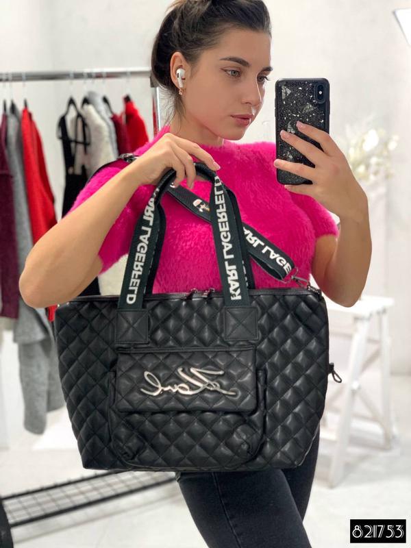 код 821753 ❤️❤️❤️НОВИНКА❤️❤️❤️ Сумка Карл Биг на змейке с ручками люкс! Материал: экокожа мягкая стёганная Цвет: чёрная Размер: 40/26 Идёт в пакете с лого Ремешок и фурнитура серебро с Лого в наличии регулируется Трансформер в сумку бочонок ✅