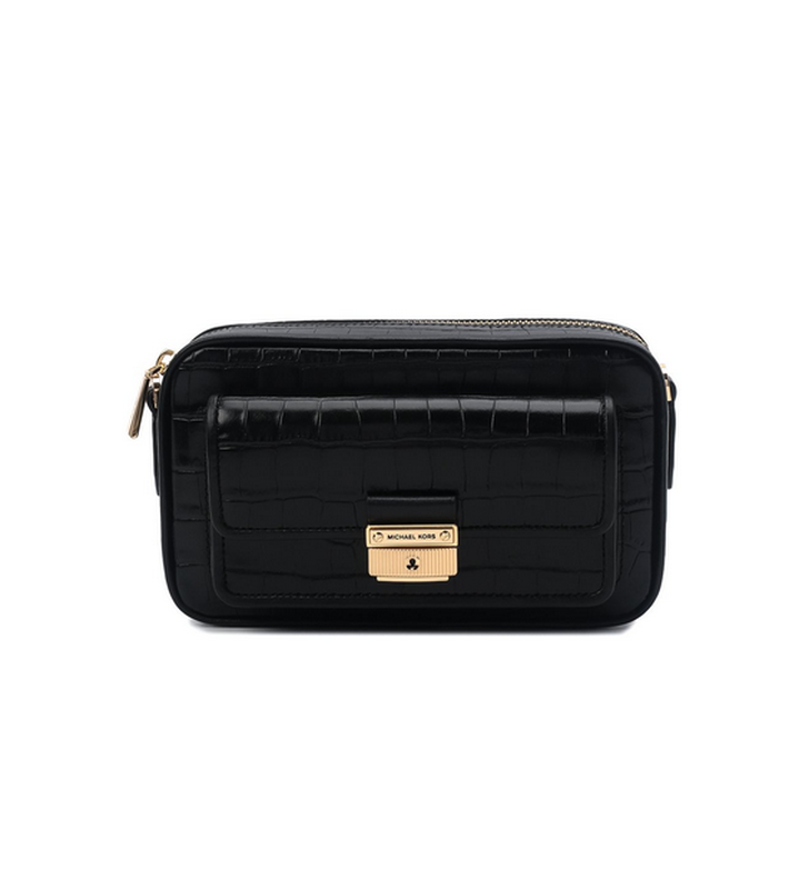 Для изготовления черной сумки Bradshaw из осенне-зимней коллекции 2021 года Майкл Корс выбрал мягкую кожу с тиснением под крокодила. Узор выглядит особенно рельефно благодаря отполированной до глянцевого блеска поверхности. Аксессуар с объемным карманом на передней панели может сыграть роль клатча, если снять широкий плечевой ремень из прочного текстиля. Кожа натуральная: 100 % Артикул производителя: 32F1G2BC2E Параметры изделия: Высота 13 см, ширина 22 см, глубина 6 см, длина ремешка 141 см. В комплект входит: пыльник, подарочная коробка .
