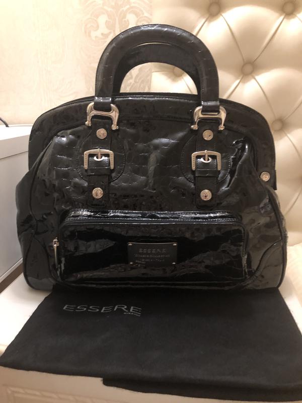 Шикарна сумка від дорогого італійського бренду Бути. Виконана з натуральної лакованої шкіри з тисненням під крокодила. Чорного кольору. В ідеальному стані, без дефектів і вад. Пильник в комплекті. Вся фурнітура брендована. Сумка досить велика. Заміри за запитом. Обмін і повернення не передбачено.