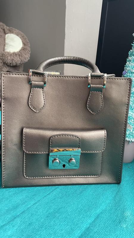 Купувала в океан плазі Київ Магазин conti Італійська фірма Абсолютно нова На довгій ручці тільки зламаний гачок Розміри 21*19,5 см Сумка не велика Переливається на вулиці красивими відблисками Точно закохує в себе всіх