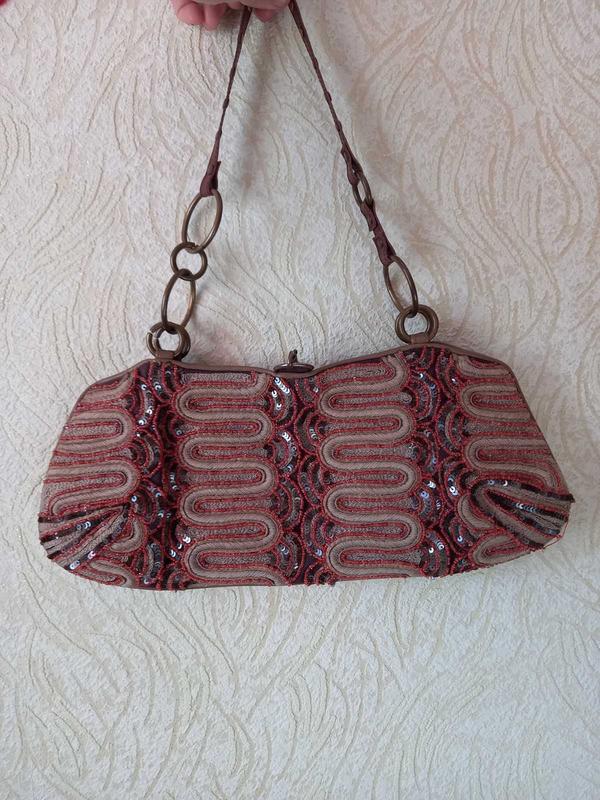 сумка jamin puech люксового бренда. В сумке лежит пакетик с пайетками и стеклярусом. С лицевой стороны сумка в ооочень хорошем состоянии , с внутренней есть ньюанс и чуть потерта, в носке не будет видно последнее фото.